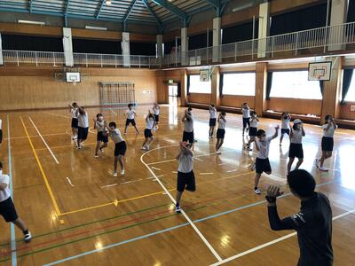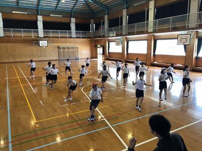 別の時間の体育館。5、6年生が運動会に向けて表現を練習していました。
