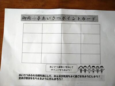「あいさつポイントカード」です。「あいさつあふれる御所浦にして、みんなが気持ちよくすごせるようにしよう」