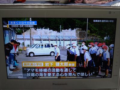 天草ケーブルテレビ 日々の話題で御所浦小学校5・6年のアマモ再生プロジェクトについての放送があっていました。