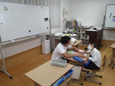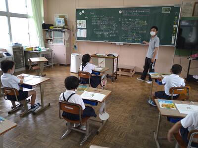 教育実習にきてくださっている若木先生も子どもたちの学びのサポートをしてくださっています。