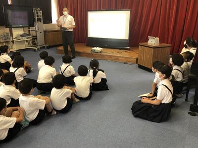 7月8日(火)本校ホールにて、御所浦小学校少年消防クラブの入部式が行われました。天草広域連合御所浦分署から署員3名にご来校いただきました。入部式では、規律訓練や講習も実施され、早速気合いが入った子どもたちです。小さな防災リーダーとして、御所浦の安全を守ってくれることでしょう!