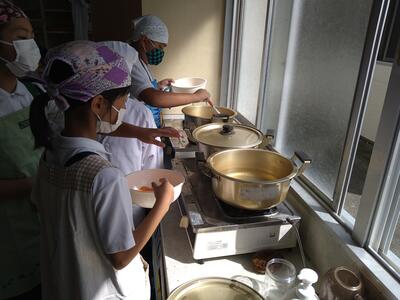 どの班も協力して、おいしそうなゆで野菜を作っていました。