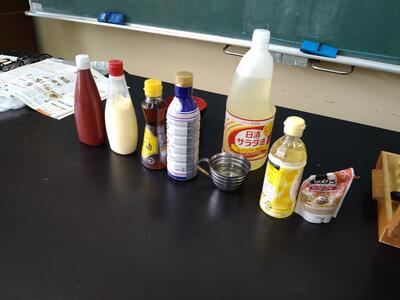 ビックリしたのは、今ドレッシングの例が教科書に4種類載っていて、自分の好みに合ったドレッシングを作って食べると言うことだそうです。小学生の頃、自分たちで作ったサラダ油と塩コジョウ、酢をシェイクしてつくったフレンチドレッシングのなんとも言えない味だけが思い出に残っている私は昭和だなと感じました。