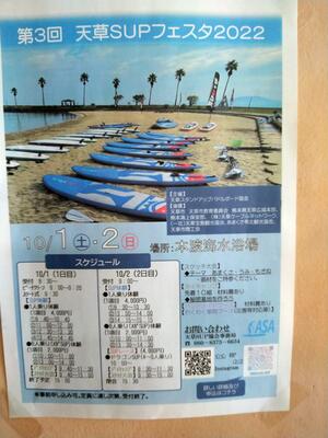 なんと、明日、明後日 本渡(茂木根)海水浴場で開催される天草SUPフェスタの展示ブースに貼られるそうです。