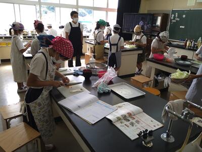 さて、昨日の午後の5年生家庭科の調理実習の様子です。