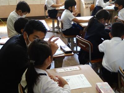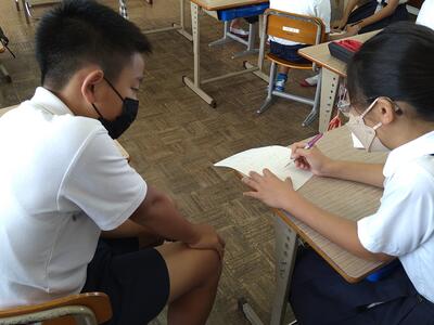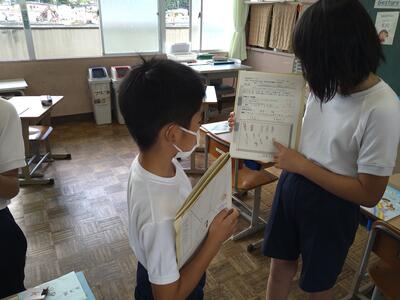 5年生も算数の問題を紙に図を書きながら説明していきます。そして説明の評価!
