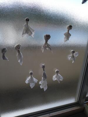5年生の祈りが通じたみたいです。昨日閉じまりをしていると教室にたくさんの「てるてるぼうず」