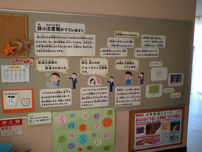 虫つながりで言うと、1年生教室の廊下はバッタコンテスト中?です。
