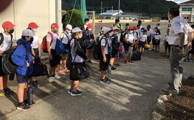 7月8日(火)本校ホールにて、御所浦小学校少年消防クラブの入部式が行われました。天草広域連合御所浦分署から署員3名にご来校いただきました。入部式では、規律訓練や講習も実施され、早速気合いが入った子どもたちです。小さな防災リーダーとして、御所浦の安全を守ってくれることでしょう!