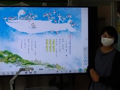 1年生は「くじらぐも」の学習でした。「くじらぐも」は「ぐりとぐら」の著者と同じ方が書いた物語です。