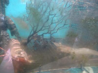 下の写真よーく見てください。卵がついています。マダコがたまごにずーっと水を拭きかけています。