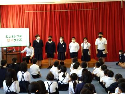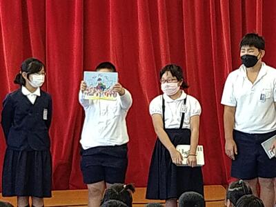 人権集会を行いました。人権主任の先生方からは、「自分のよいところに目を向けてみよう」というお話がありました。その後、縦割り班に分かれ、子どもたちは、友達のよいところをハート型の台紙に書き込んでいたものを手に紹介しました。誰のことが書かれているのか分からない班の友達は、発表を聞きながらドキドキしています。名前が明らかになると、紹介された子は嬉しそうに言葉を交わし、温かな雰囲気が広がりました。子どもたちが体育館を後にしたあとも、会場にはいつもより柔らかく、温かい空気が残っていました。