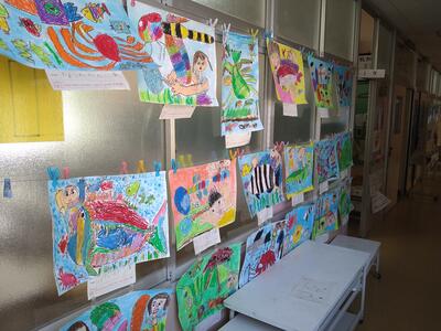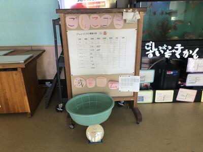 朝から子どもたちに囲まれる「ごしょっこ水族館」。今日も「わあ、きれいになってる!」と声をあげながら、1・2年生の子どもたちが水槽をのぞき込んでいました。昨日の放課後、保護者の方が掃除と海水の入れ替えをしてくださったおかげです。水槽の中では、鯛の稚魚がすくすくと成長しています。