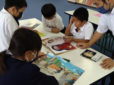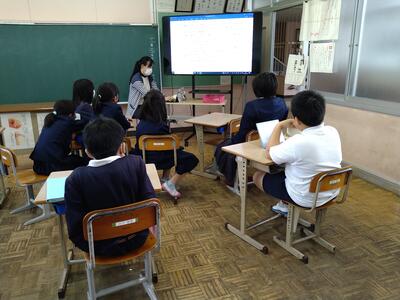 今日は、天草市教育委員会の先生、御所浦中学校の先生、東京からの学生さん(キャラバン隊)が来校されました。2時間目の5年生の国語の授業では、タブレット端末に自分の考えを残しながら、話し合いが行われました。児童は、緊張しながらも話し合いが少しずつ活発になっていく姿が見られました。緊張の中での授業、これも大切な経験です。