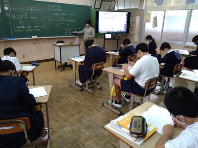 6年生の算数の様子です。イルミネーション準備の時と授業中のメリハリをつけて頑張る6年生に成長を感じます。