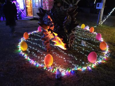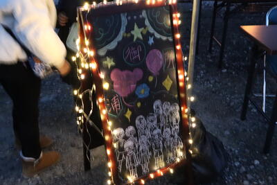 点灯しました。子どもたちが考えたイルミネーション迷路も実行委員会の皆さんのアイデアで見事出来上がりました。子どもたちが「遊園地みたい!!」と感動していました。