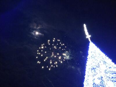 最後は、花火が打ち上がりました。月と花火とイルミ!ステキな幻想的な夜空でした。