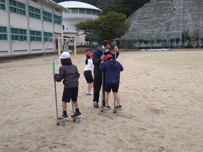 4年生は、勇志国際高校近くの入り江で伝馬船の体験を行いました。地域の方々のご協力をいただきながら、全員が艪をこいで舟を進める貴重な経験をしました。風が吹く中での操縦は容易ではなく、悪戦苦闘しながらも和船ならではの操船を体感することができました。 ※伝馬船(てんません)とは、日本で使われた木造の小型和船で、本船と岸の間で荷物や人を運ぶために用いられた船です。