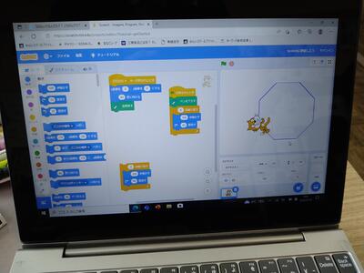 5年生は、スクラッチというソフトを使って「正多角形をつくろう」という内容でした。