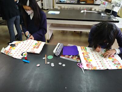 6年生は針金を曲げて、それに和紙を貼ってつくるランプシェードです。