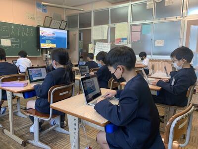 5.6時間目、本校4年生が水俣第二小学校とオンライン交流会を行いました。自己紹介やクイズを通して、楽しいひとときを過ごすことができました。水俣から水の供給を受けている御所浦にとって、今回の交流はたいへん感慨深く、社会科の学習にもつながる貴重な機会となりました。今後のさらなる展開が楽しみです。水俣第二小学校の皆様には、温かいご理解とご協力をいただき、心より感謝申し上げます。