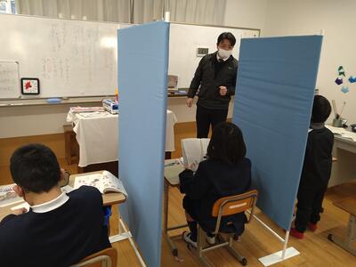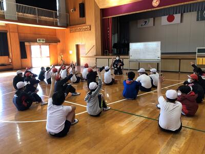 1年生の様子です。今、距離をとっての音楽を行っています。今日は次の時間体育もあるので、鍵盤ハーモニカを体育館で行っていました。「少し、寒いけど、へっちゃらです」これまで学習した曲を連続で聴かせてもらいました。