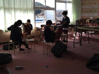 校長室で仕事をしていると、体育館の方から「鉄腕アトムのテーマ曲」が軽快に流れてきました。音楽に惹かれて体育館へ向かうと、11月の天草郡市音楽会に向けて、本校の3・4年生が一生懸命練習している姿がありました。演奏は以前よりも力強くなり、音のまとまりや集団としての一体感も感じられるようになってきました。すばらしい!