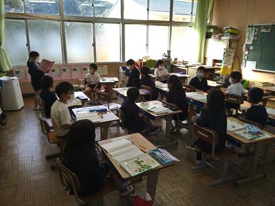 2年生は、「おにごっこ」の説明文の後に自分で書いた遊びの説明文を発表します。