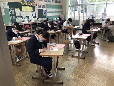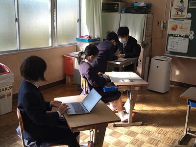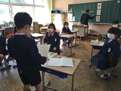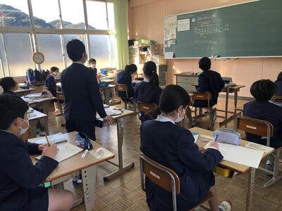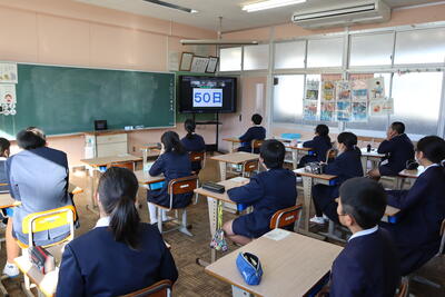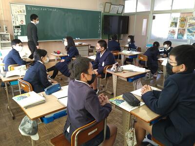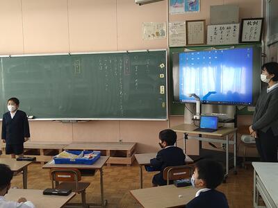 今日は、5年担任が、中学校の立志式にリモートで講話です。