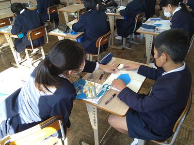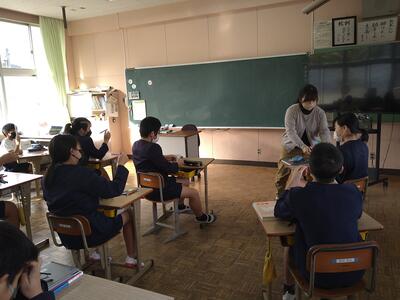 6時間目、5年生がミシンを使った学習をしていました。お互いに教え合いながら、基本の操作を習得していました。今後のナップザックづくりが楽しみです。