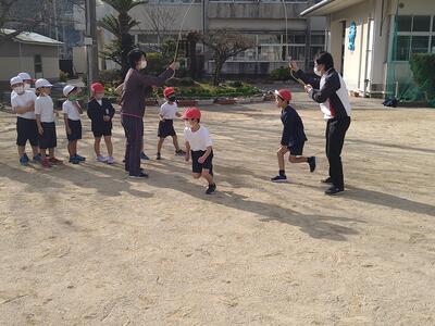 子どもたちの声も聞きながら工夫したり、かけ声をあわせたりと取り組んでいました。2月中旬までチャレンジが続きます。今年も頑張っていきましょう!!今日も「この前は140回だったけど今日は184回だった。210は超えたいなあ」「去年の最高記録を超えたいなあ」などそれぞれの今日の感想を語ってくれました。」