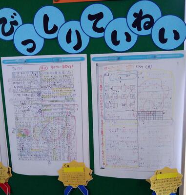 のびのび学級です。担任の先生が冬休み中に自己研鑽のために作ったノートを見て、驚いていました。