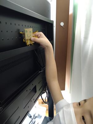 「テレビのうしろのすきまを見つけたよ!!すきまちゃん、はいチーズ!」