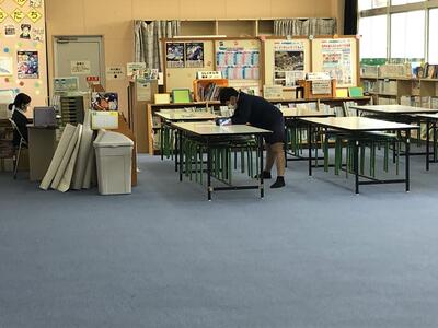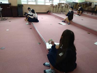 3年生も音楽の時間を紹介します。音楽もこのように距離を少しとって実施しています。