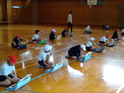 5年生は、「ルパン三世のテーマ」の合奏の練習。
