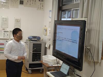 今日は、職員の研修もありました。ICT支援員にGoogle workspaceのアプリと使い方を紹介していただきました。