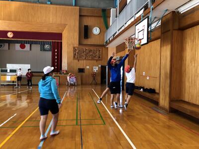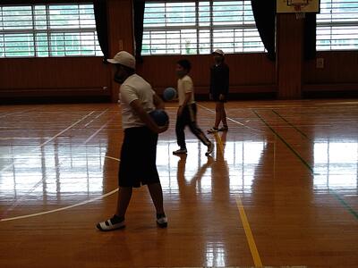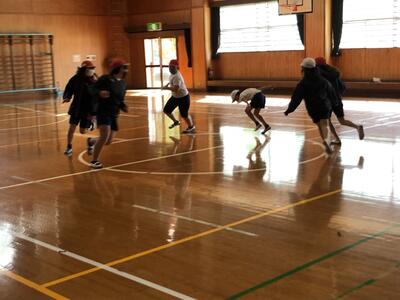 4時間目の体育館では、高学年のゴール型ゲーム(バスケットボール)を行っていました。
