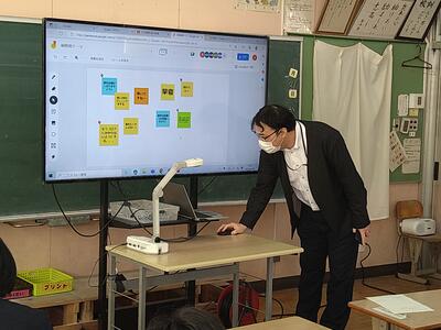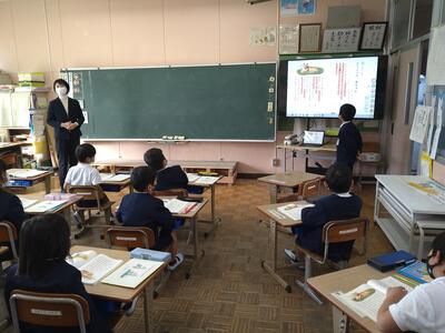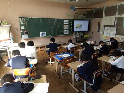 5年生は、道徳です。玉名の横島地域の干拓の歴史と伝統的な踊り「潟担い節」を題材として「郷土を守るために大切なことは何だろうか?」について考えを深めました。