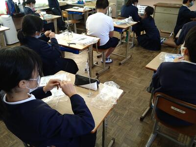 6年生は、理科の電気の学習中。今日は実験キットを製作していました。