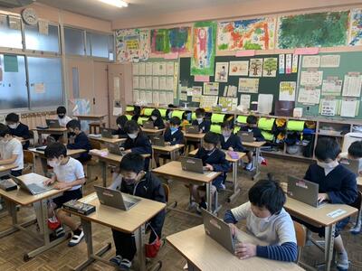 前の時間に参観に行ったときにまだ調べ始めていたのに、次の時間にはスライドが出来上がっている!とても成長を感じました。