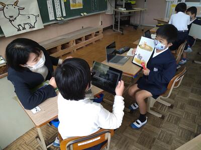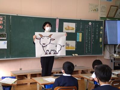 1年生は「動物の赤ちゃん」の教科書で学んだ動物ではない、動物の赤ちゃんで知っていることをみんなに伝える学習中です。ハムスター、カンガルー、ふくろう・・・・