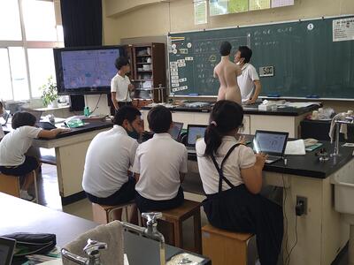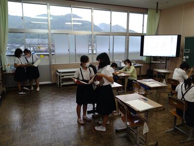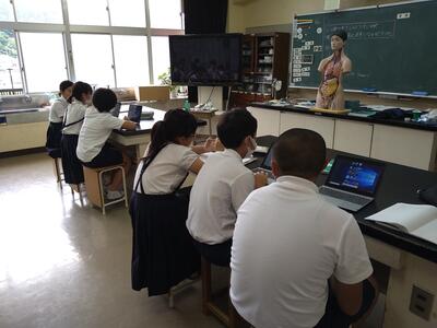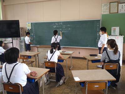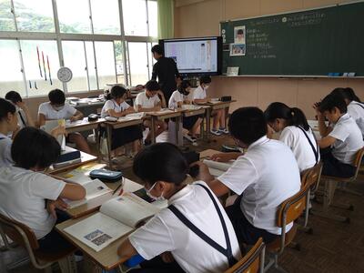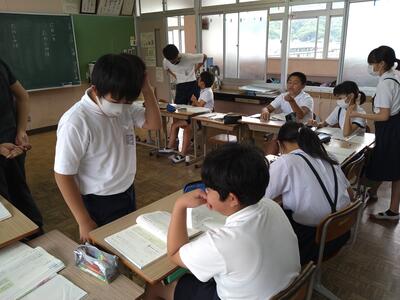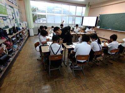 さて水曜日の小中合同研究授業の一場面です。中1理科生物に関する授業。動物の分類の視点を考えていきます。小学校理科専科が小学校での既習事項をおさらい。その後中学校での学びにつなげていきます。連携とても大切です。義務教育9年間、その前の保育所での学び含めて「御所浦で学んでよかった」と10年後、20年後思い返せる教育の充実を図っていきます。今年も御所浦小中の連携は熱いです。