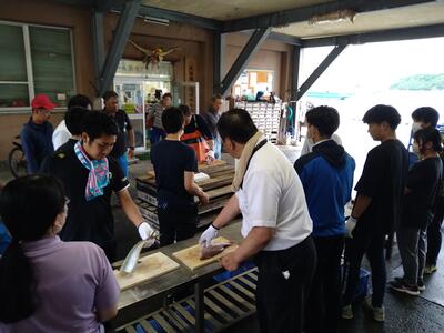 さて、昨日は保小中連携で授業研究会をした放課後、勤務時間外でしたが、小中学校の先生方で魚捌き体験を行いました。天草漁協御所浦支所の皆さんにご協力いただき講師や捌き支援をしていただきました。