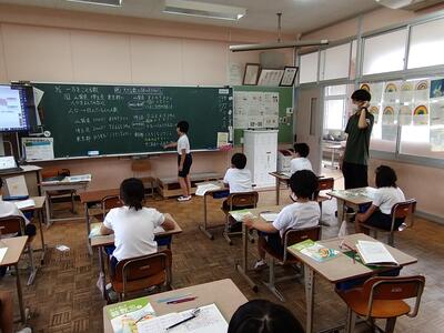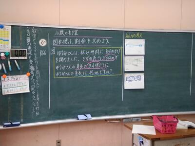 最初は意見がわれていましたが、そこは5年生。これまでの学習の内容にふり返って考え、「たしかめ算」をしながら正解に行き着きました。この「みんなで」というところが大切です!!成長を感じました。
