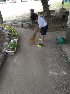 今日の嬉しい写真1枚。私が児童玄関前を掃除していると、校長先生手伝いますよとお手伝いしてくれました。