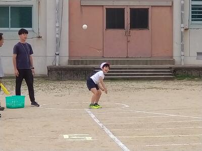 外では体力テスト(50m走、ソフトボール投げ)を学年で分かれて実施です。