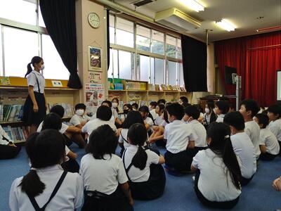 本日、東京都の明星大学の学生さん8名が、本校の教育活動の視察訪問に来校されました。皆さんは、へき地教育について自主的に学習をされている方々で、高い志を持たれています。歓迎会では、はつらつとした学生さんの姿に、子どもたちの目も輝いていました。3日間という短い期間ですが、御所浦小の子どもたちとの交流を満喫してほしいと思います。