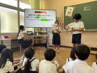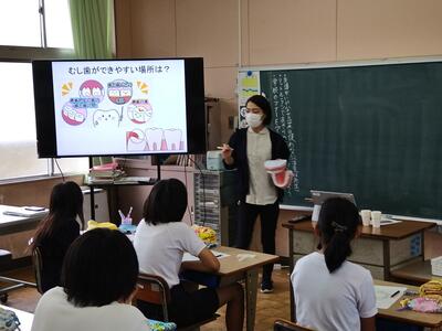 学校でも、う歯予防の取組を養護の先生と担任が連携をとりながら行っていきます。
