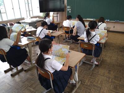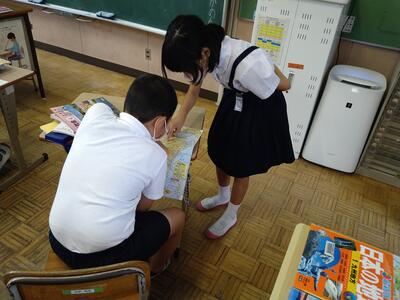 4年生は、地図帳で地名探し選手権の最中でした。子どもたち慣れたものです。