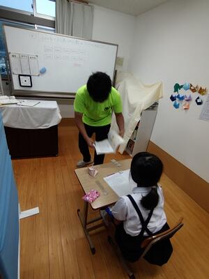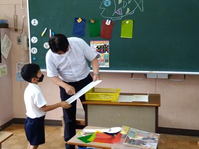 自分の作品を担任の先生の他にも見てもらいたい。自分の「できた」「やったー」という思いがとても現れていました。